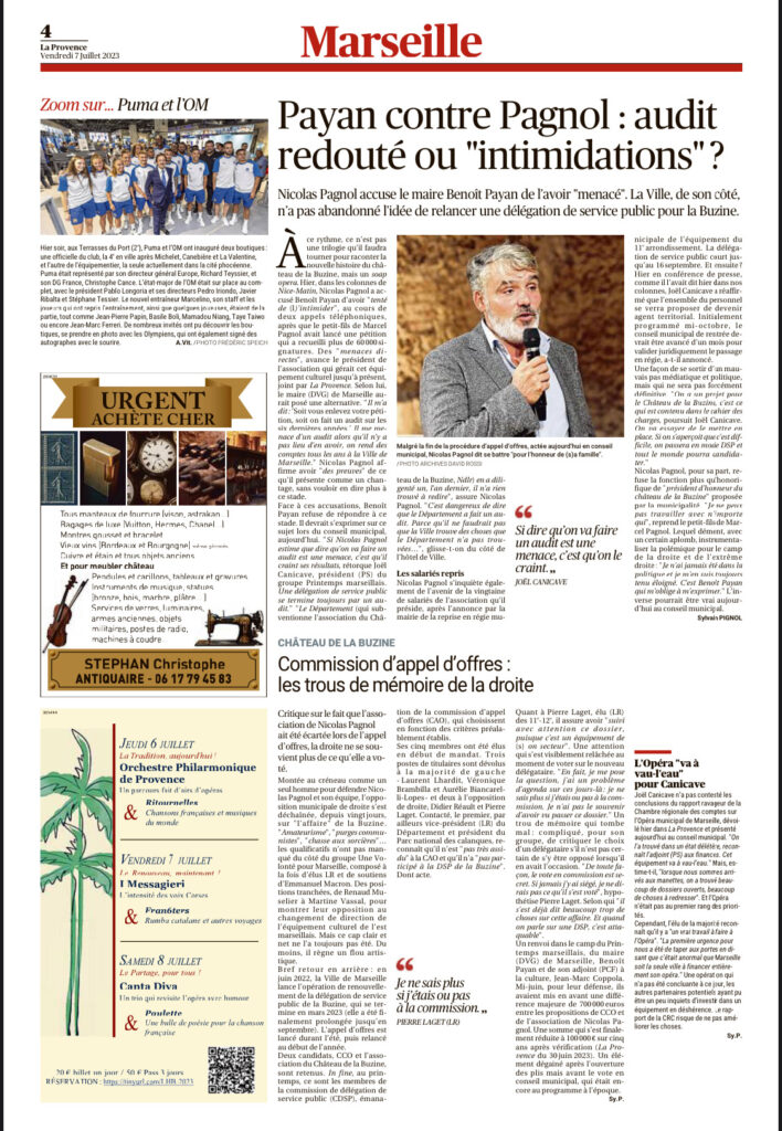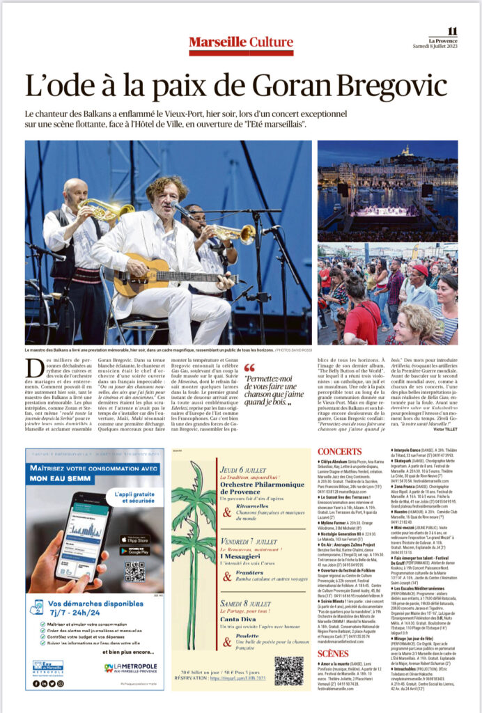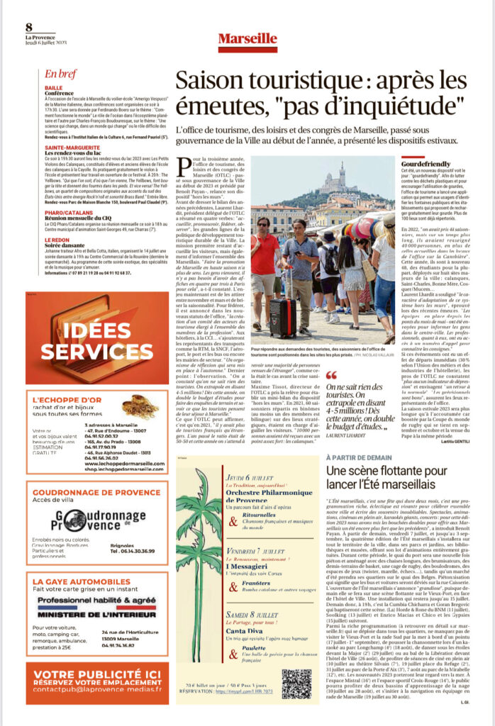 Merci au journal « La Provence » d’avoir annoncé notre festival dans son édition de jeudi.