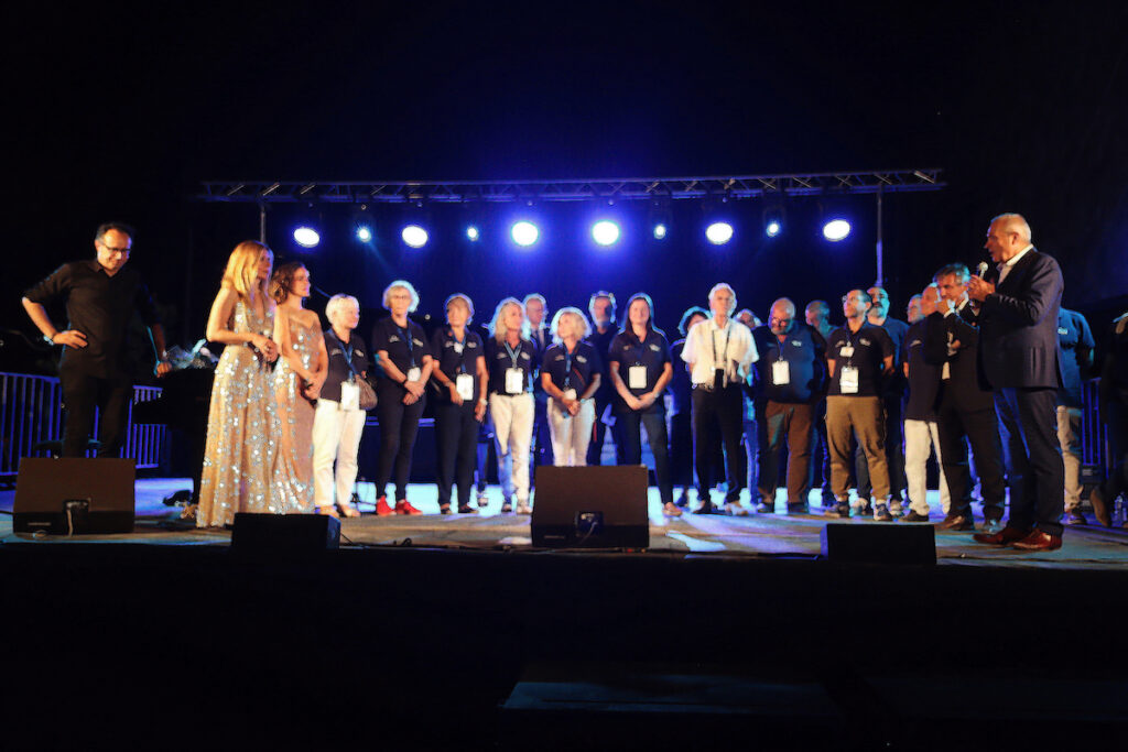 Et pour finir la soirée, tous les bénévoles sont montés sur scène avec les artistes, pour saluer le public.
