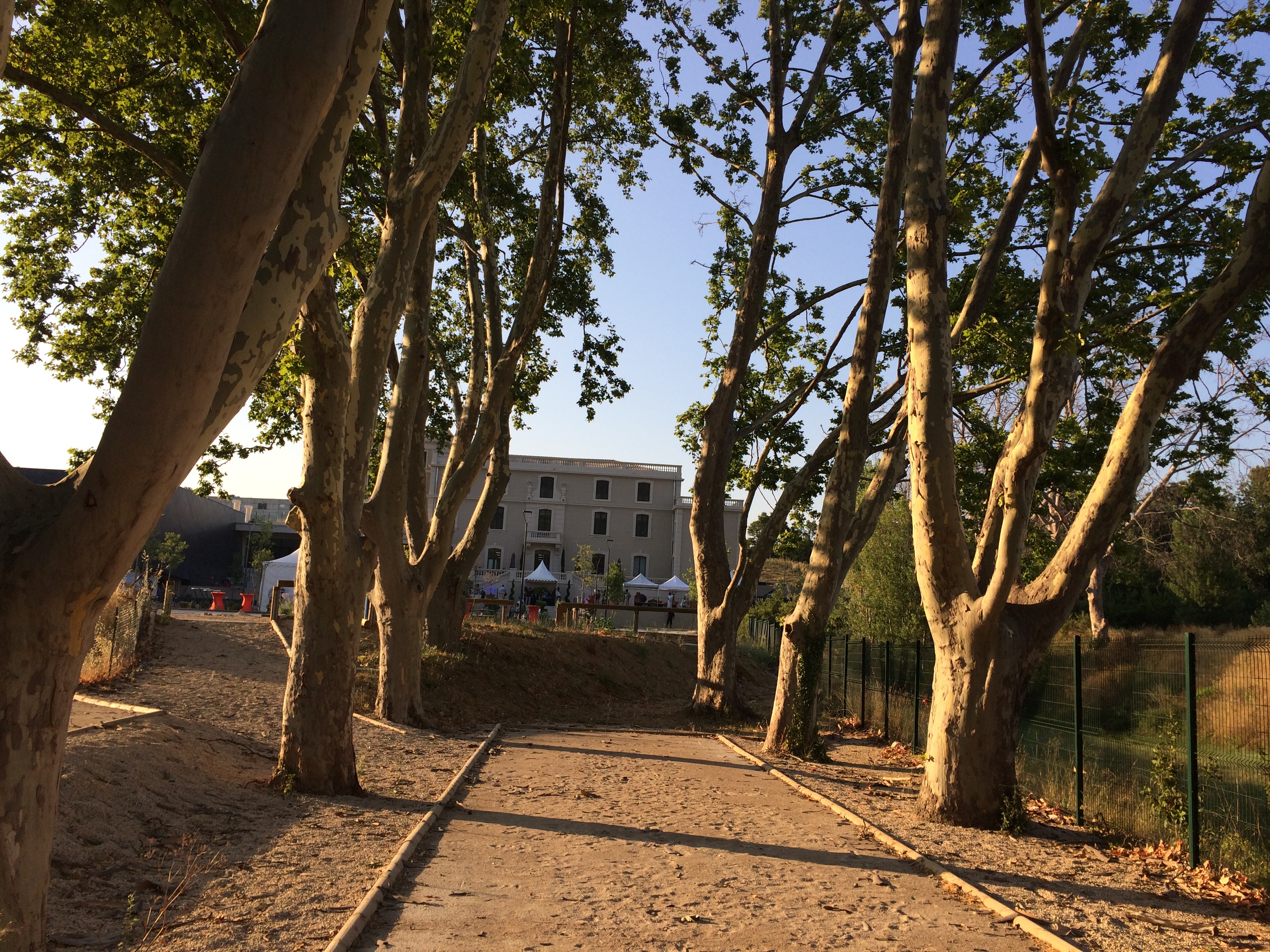 Le château, vu des platanes, avec les pavillon des restaurateurs