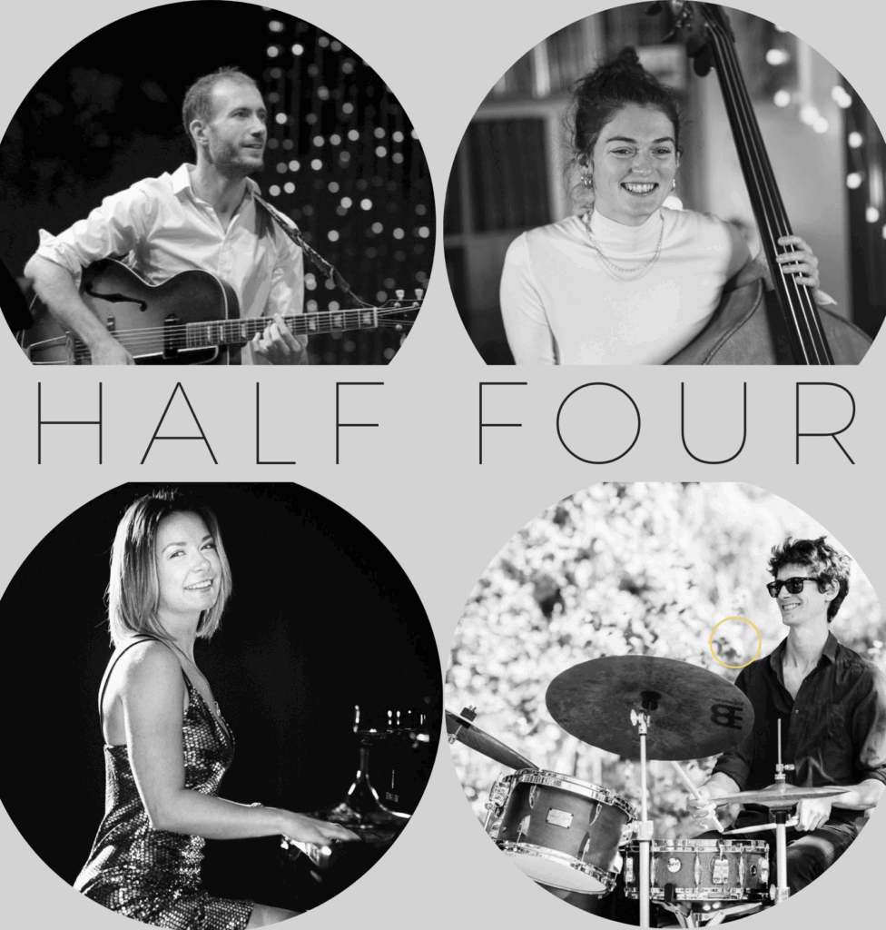 Half Four, ce sont Philippe Barré (guitare), Ana Gruzina (clavier), Luca Scalambrino (batterie) et Willy Quiko (contrebasse).
